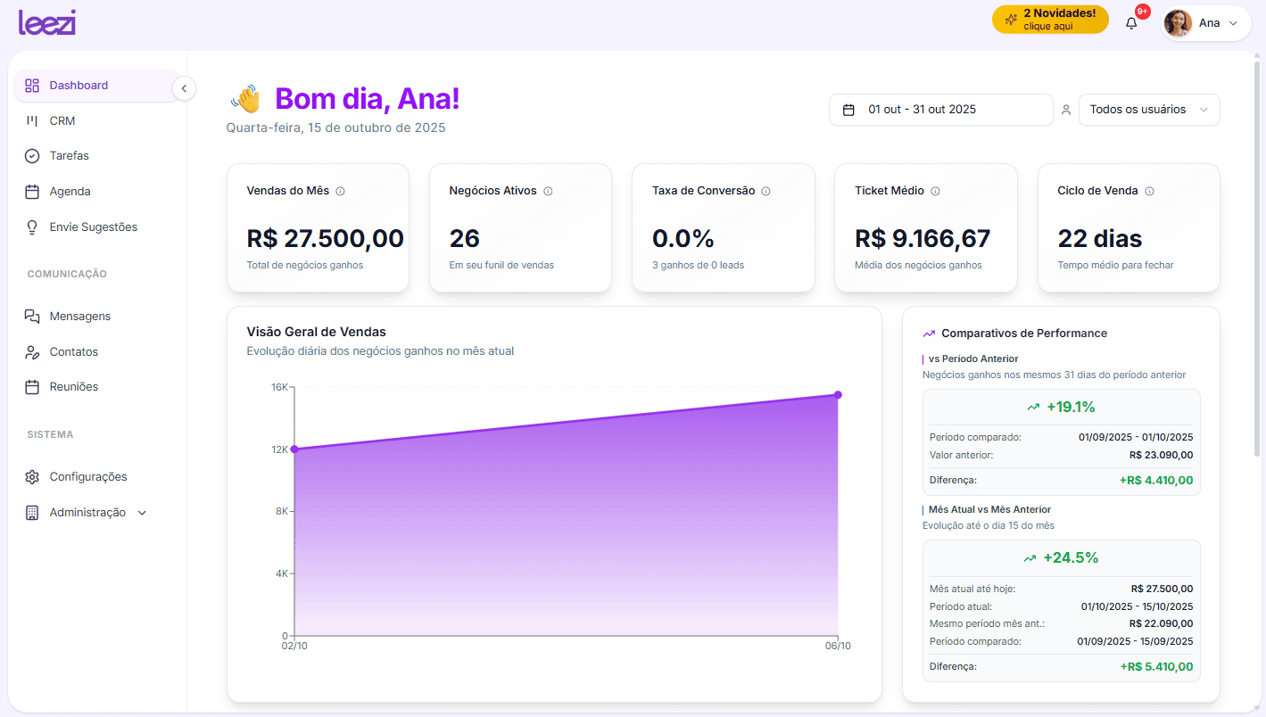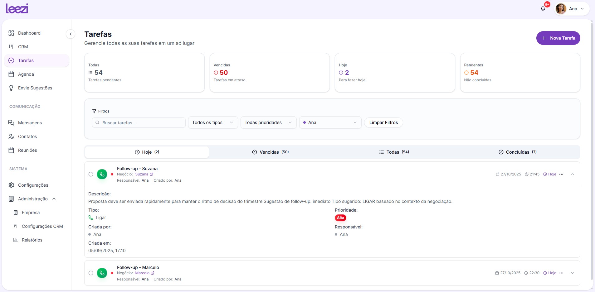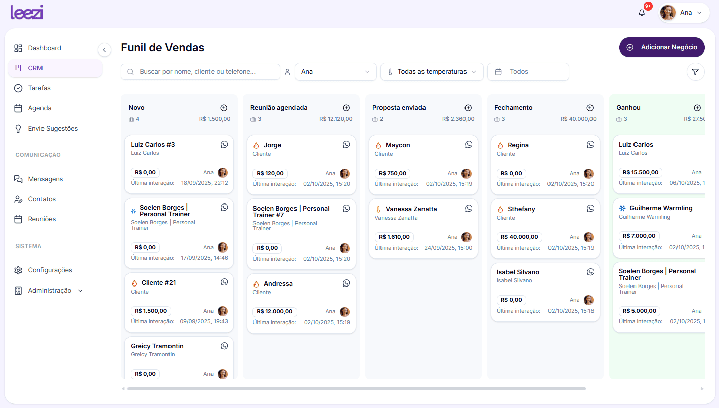 A Leezi é uma solução SaaS desenvolvida para centralizar e automatizar a gestão de diferentes áreas, como CRM, controle e acompanhamento de métricas. O projeto foi criado com foco em usabilidade, design moderno e escalabilidade, atendendo múltiplos segmentos através de uma arquitetura modular e intuitiva.