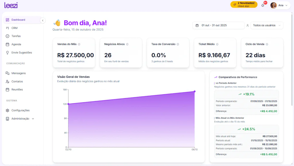 Métricas em tempo real e relatórios confiáveis para agir rápido, sem “achismo”.